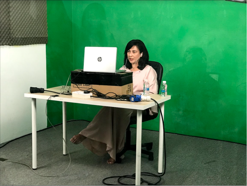 We have recruited the production teams including the broadcast team, AV team, and technical team to assist CGS-CIMB for their virtual corporate day. During the event day, we have limited the number of people onsite in the production venue, including the moderators, invited guests, speakers and the operators. Not to worry, everyone is following the SOP strictly by separating into the different rooms. To enhance the company branding awareness, each room was set up with the greenscreen, camera, and production lights to have a better quality of livestreaming with a full branding background.